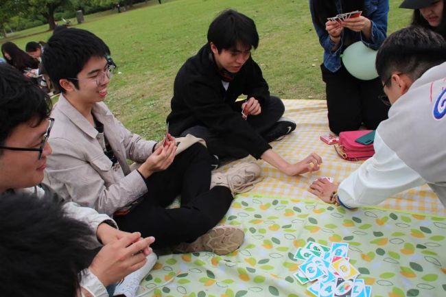 通过“你画我猜”“松鼠和大树”等热身游戏,同学们建立起初步的默契;在“出口成章”“七元巧合”等游戏中,同学们接受了对思维能力和团队协调能力的考验;在“你的名字”“站还是不站”“不要做挑战”“气球争夺”等游戏中,同学们拉进了彼此的距离;在“UNO牌”的头脑风暴中,同学们感受到思维碰撞的快乐。惠风和畅,春日当中,上午的破冰活动落下帷幕。