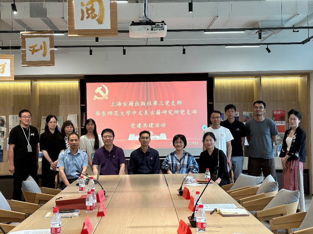 6月29日下午,伴着书香,在上海世纪出版集团A座501室宽敞、明亮、时尚的会议大厅里,华东师大体育博彩网站 古籍研究所教工党支部与上海古籍出版社第三党支部进行了一次热烈、和谐的支部共建活动。古籍所参会的有体育博彩网站 副系主任、古籍所所长方笑一教授,古籍所支部书记丁红旗教授,以及支委任莉莉、张文副教授,王耐刚副教授,另外,无党派人士唐玲副教授也参加了会议。上海古籍出版社党委委员、副总编刘赛,第三支部书记、第一编辑室主任杜东嫣,支委郭冲、张卫香,以及彭华,第二编辑室主任曾晓红、第三编辑室副主任毛承慈,第一编辑室副主任钮君怡等老师参加。会议由第一编辑室副主任戎默主持。