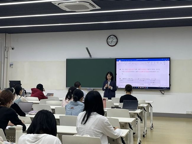 在讲座环节,李琳老师首先从自身的教学实例出发,以《周亚夫军细柳》《北京的春天》《荷塘月色》等初高中课文大量举例,讲解了细读文本的具体方法,如抓住文章结构、版本对比、重视作家手稿、比较阅读等。李琳老师指出,文本细读为备课与上课的基础,要学会钻研,用各种各样的方式让学生对课本内容有兴趣、有思考,并传达人文情感与社会关怀。接着,李琳老师指出要具备单元整体意识,用发展开放的眼光看待教材,体会编写者意图。之后李老师针对同学们讲座前的问题谈到了如何布置学案、了解学情和设置教学问题,通过启发性的问题启迪学生思考,让作业设计大有可为,并展示了很多学生的画作、诗词和总结表格,体现了有效教学的成果。最后,李老师对以上内容进行了总结,认为整本书阅读即梳理、融合、贯通、重组、深化教材,而教师应该在大量阅读与积累的基础上有瞻前顾后、融会贯通的意识,同时强调了文献参照式的备课方法。此外,李琳老师还对一些微课平台和教师比赛进行了推荐,告诉同学们语文教师应把日子过成“语文”,通过阅读、旅游、看剧、观展等各种方式充实己身,“让一朵云唤醒另外一朵云”,在积累、反思中前进。