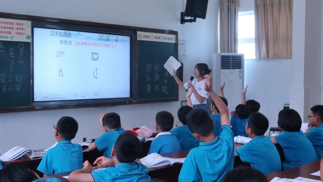 上午的课堂上,实践团队志愿者向同学们强调了用好普通话、写好规范字的重要性,孩子们在志愿者的细心指导下主动上台朗诵、自我介绍,用普通话与志愿者一起聊天,描述自己的爱好与梦想。体育博彩网站 副教授吕志峰老师则用通俗易懂的方式为现场的同学们讲解了汉字的演变过程,旨在让同学们体会汉字的悠久历史与文化魅力。在场师生积极互动,活动现场气氛热烈。