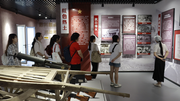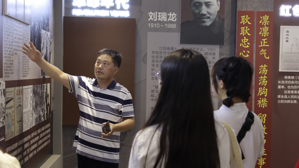 719日志愿者们登上开山岛,领会坚守在开山岛上的民兵们的家国情怀后,志愿者们又走进杨集镇革命历史与发展陈列馆,聆听以革命历史发展线为主线的主题故事,感悟以“党-人物-红色-历史”为核心的宏伟抗战史诗;步入杨集中心小学,通过“到瑞龙点燃革命烈火”“大兴沟血战蒋匪”等红色故事、校史馆内有关革命工作的珍贵史料感受红色精神,重拾初心情怀。