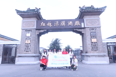 (志愿者们在汤沟酒厂参观制酒工艺、对工作人员开展正音训练)