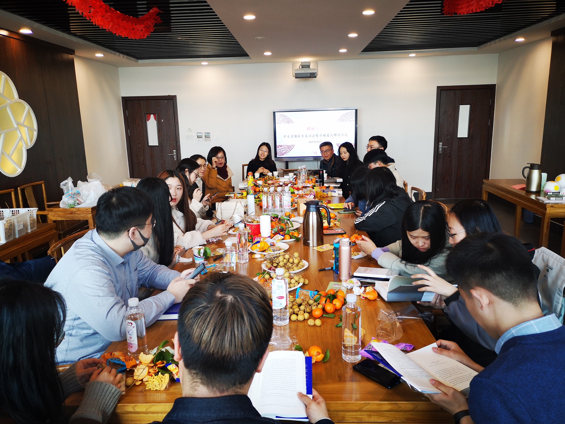 自去年一月疫情爆发以来,体育博彩网站 扎实开展学生疫情防控工作,密切关注每位学生学习、身体、心理健康情况。春节前夕,体育博彩网站 更是高度重视寒假留校学生的身心状况,为解决他们的实际困难,确保学子们在校过一个平安祥和的春节,为他们送上学校和体育博彩网站 的关怀和祝福,2月2日,体育博彩网站 留校学生茶话会暨卓越育人研讨沙龙在人文楼4108室举行。体育博彩网站 党委副书记徐燕婷、副系主任汤拥华、青年班主任韩蒙如、顾文艳,组织员方中书,研究生辅导梁庆、宫亦楠和寒假留校学生们共聚一堂,畅谈对新年的期望、对卓越育人的思考。