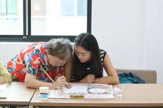 同学们在座位上积极地完成自己的工笔画作,陆老师也走下来进行指导,或帮同学们调色,或纠正握笔,或指导画法。在体验画工笔南瓜的过程中,同学们的积极性被调动,感受到了初次尝试工笔画的意趣,每个人都收获了属于自己的工笔南瓜画。