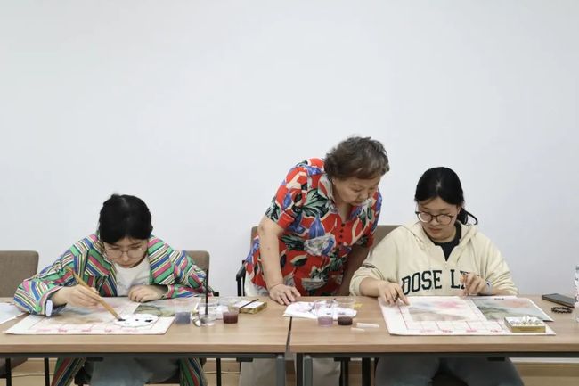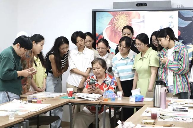 活动最后,陆老师给大家展示了她的工笔画作品,晶莹剔透的绿葡萄、细腻诱人的紫葡萄、熟绢上的人像,都美得灵动生姿。通过参加此次活动,同学们既学习了工笔画的绘画技巧,也感受到工笔画所蕴含的美学意趣与深厚的文化底蕴。
