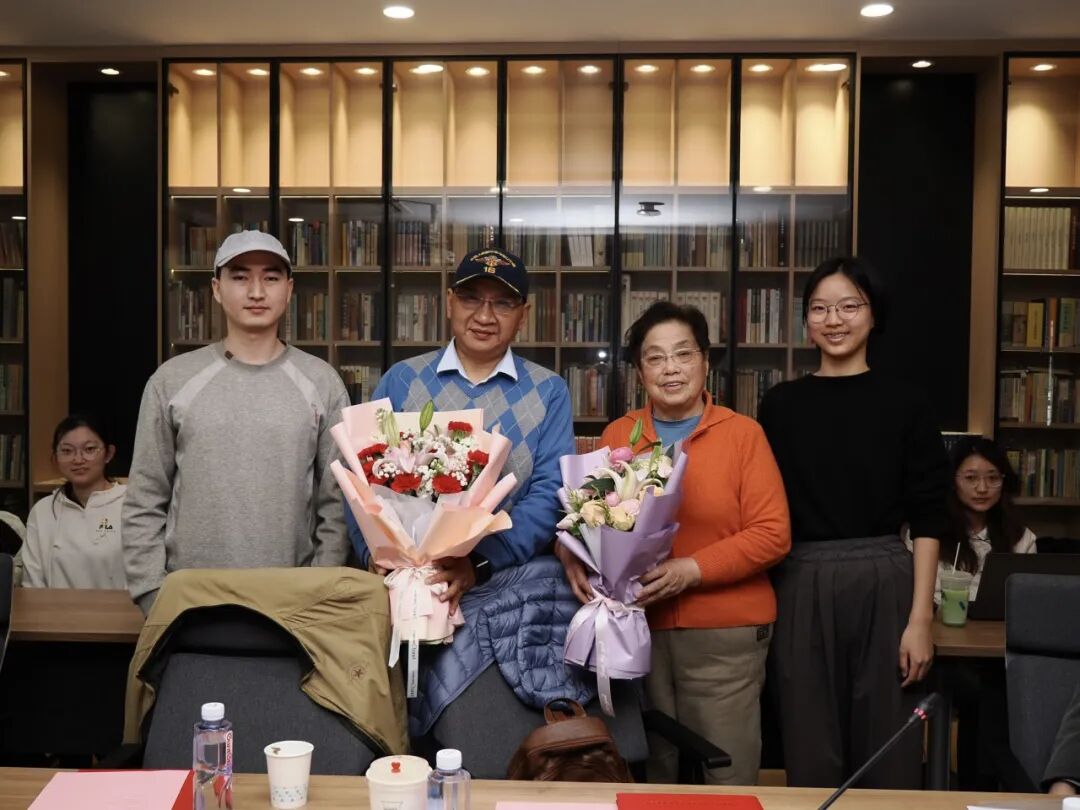 仪式的最后,学生代表向两位捐赠人献上鲜花,表达敬意与感谢。