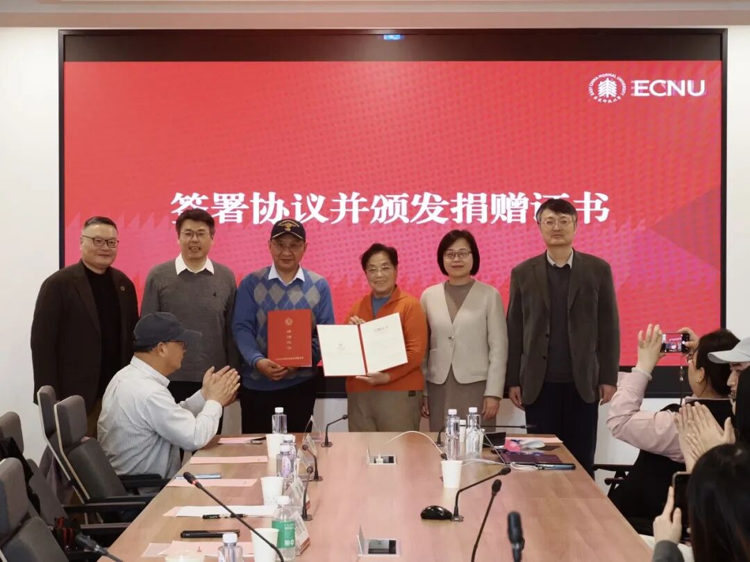 在与会人员的共同见证下,捐赠人李莲娣、汤国勤与教育发展基金会代表张赫共同签署捐赠协议,并接受捐赠证书。