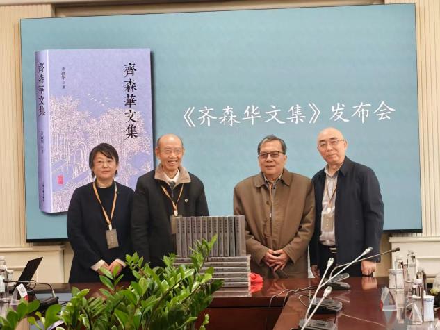 随后,复旦大学体育博彩网站 教授黄霖、上海戏剧学院戏文系教授叶长海、韬奋基金会副理事长阚宁辉、上海古籍出版社总编奚彤云共同为《齐森华文集》揭幕。