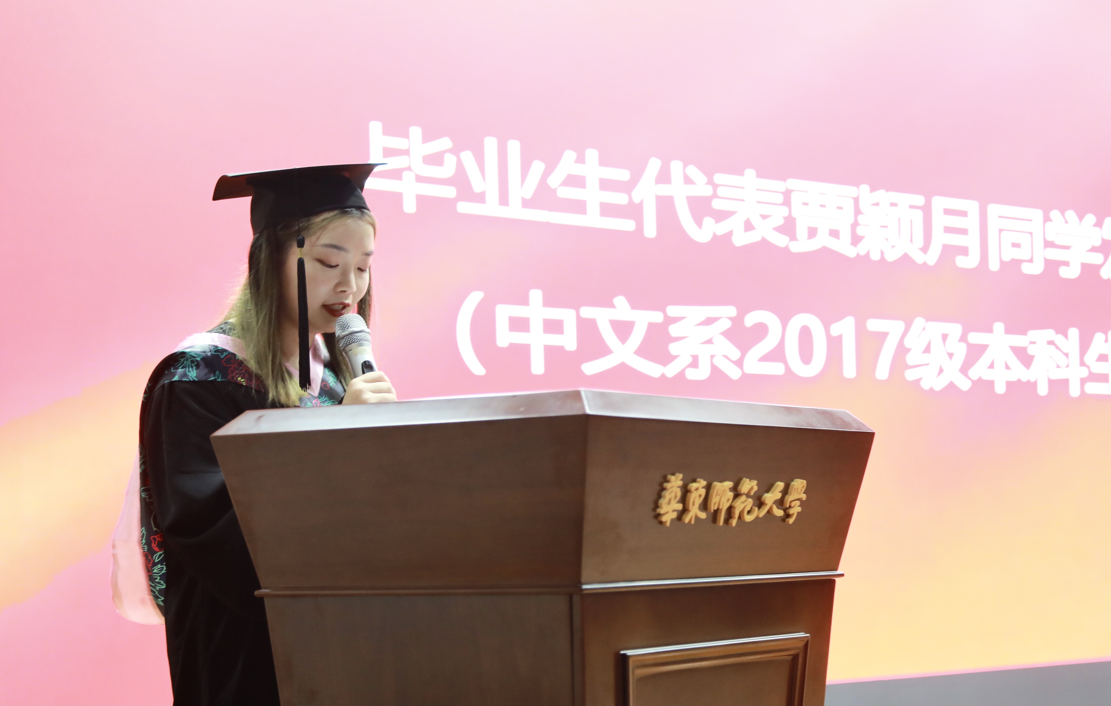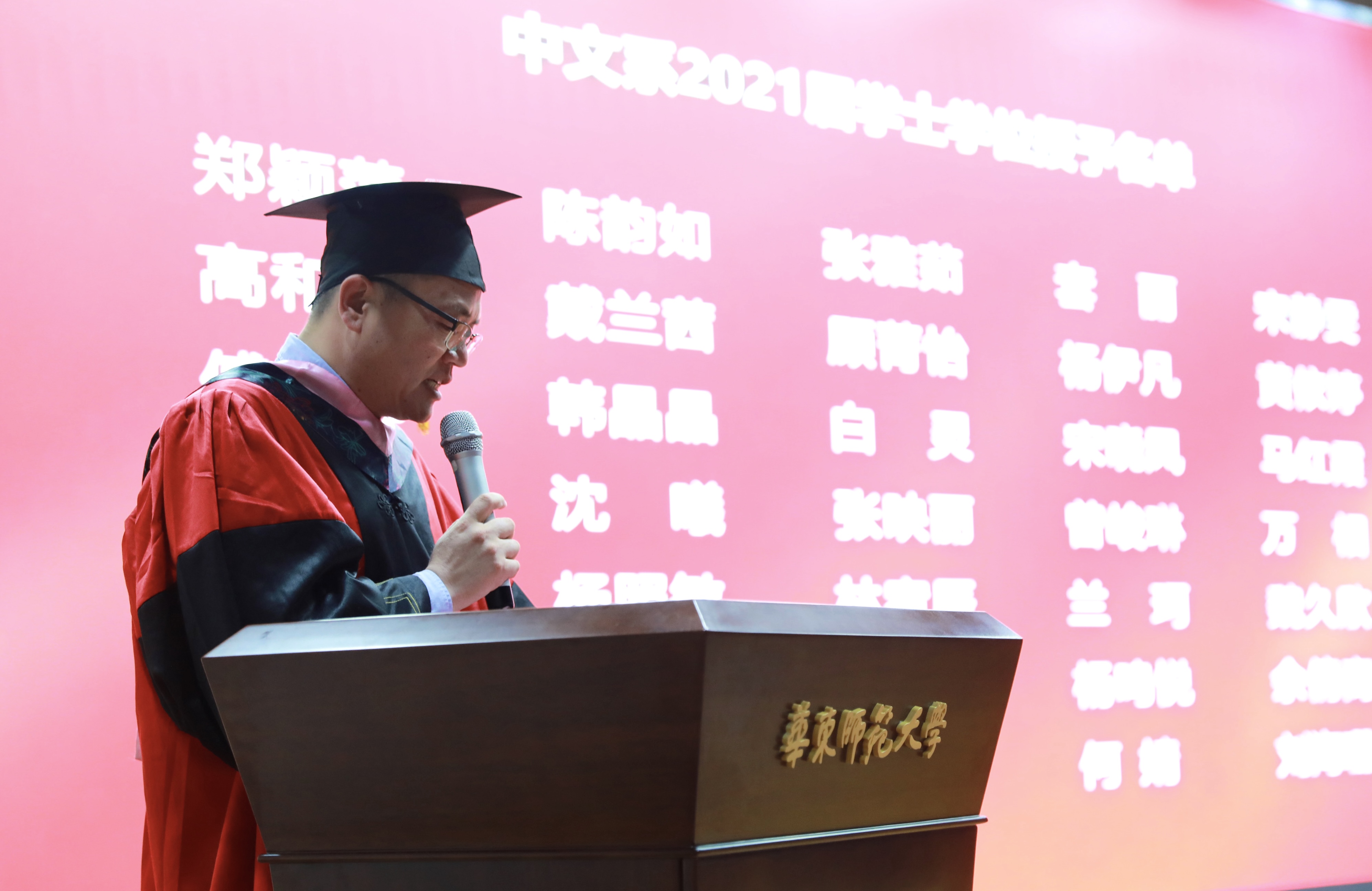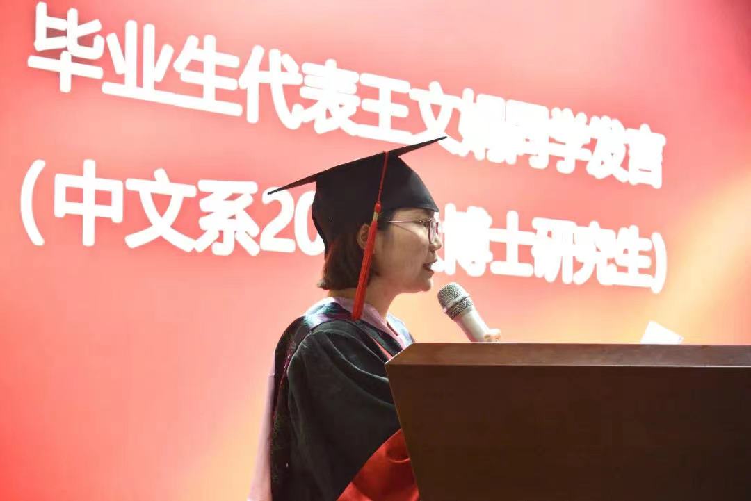 2021届硕士毕业生代表林慧珍、博士毕业生代表王文娟分别发表了毕业感言。林慧珍回忆起本、硕七年在华东师大的学习生涯,印象最深刻的是华师中文“润物细无声”的教育,感谢老师们课堂上的循循善诱和论文上的悉心指导,尤其感谢梁艳导师亦师亦友的陪伴和激励。王文娟也在这里度过了最美好的七年,见证了华东师大的诸多变化,但不变的是宁静的校园环境,安宁而美好的中文底色。将大我溶于小我之中,真诚地面对自己的身份并承担起其中的责任,潜移默化地给周围人带去正面力量,是王文娟从体育博彩网站 学到的为人师者的操守。