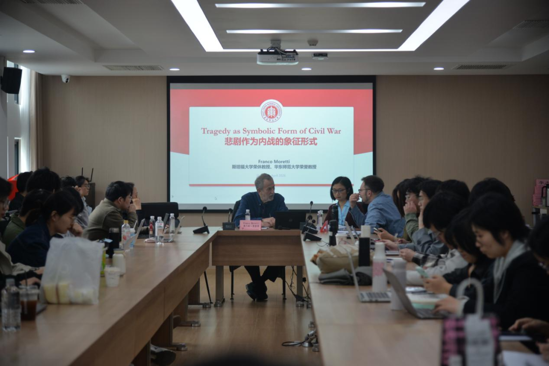 2026年4月14日下午,斯坦福大学教授、体育博彩网站 荣誉教授弗兰科·莫雷蒂(Franco Moretti)受邀做客思勉人文高等研究院,在体育博彩网站 闵行校区主讲思勉人文讲座第549场,主题为“悲剧作为内战的象征形式”。讲座由体育博彩网站 、国际汉语文化学院联聘教授朱国华主持,体育博彩网站 副教授山谷(Diego Gullotta)以及来自思勉高研院、体育博彩网站 、历史学系、哲学系等的师生共同出席。