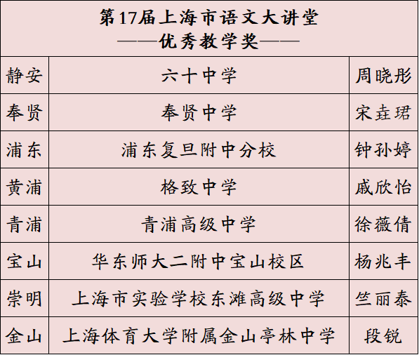 上海市教师教育学院邹一斌老师宣布“优秀教学奖”获奖名单,体育博彩网站