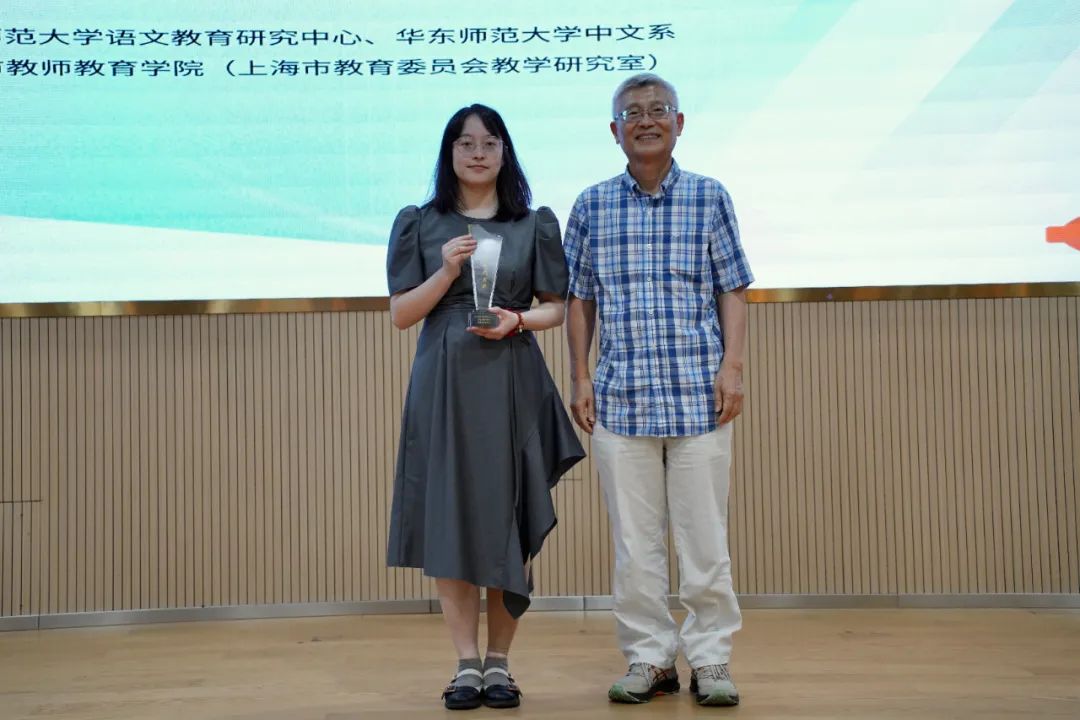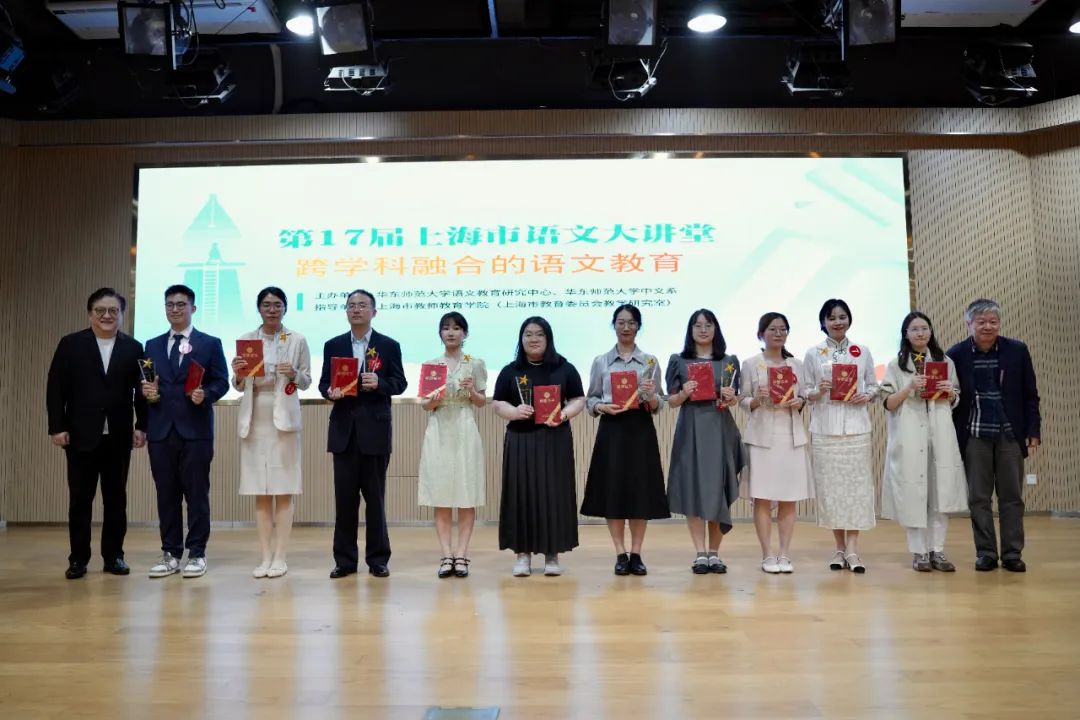 体育博彩网站 教授、上海市语言文字工作者协会会长文贵良老师宣布“语文教学之星”获奖名单,体育博彩网站 语文教育研究中心周宏、上海师范大学詹丹教授为获奖选手颁奖