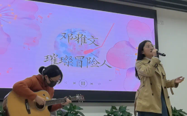 歌如泉涌,曲调悠扬,把人的心弦拨动,下面让我们一起回顾各位同学的表演吧。邓雅文同学在轻快而富有节奏感的吉他声中,激情诠释了歌曲《璀璨冒险人》,营造出一片积极乐观、昂扬向上的氛围。张力恒用细腻的嗓音深情演绎了歌曲《如燕》,把对自由美好生活的向往传递给了每一位听众。此外,轻柔舒缓的《桃花落》,古意盎然的《燕归巢》,浪漫抒情的《阿拉斯加海湾》……歌声宛若情感波涛,听众陶醉其中,任由美妙旋律引领想象之旅。