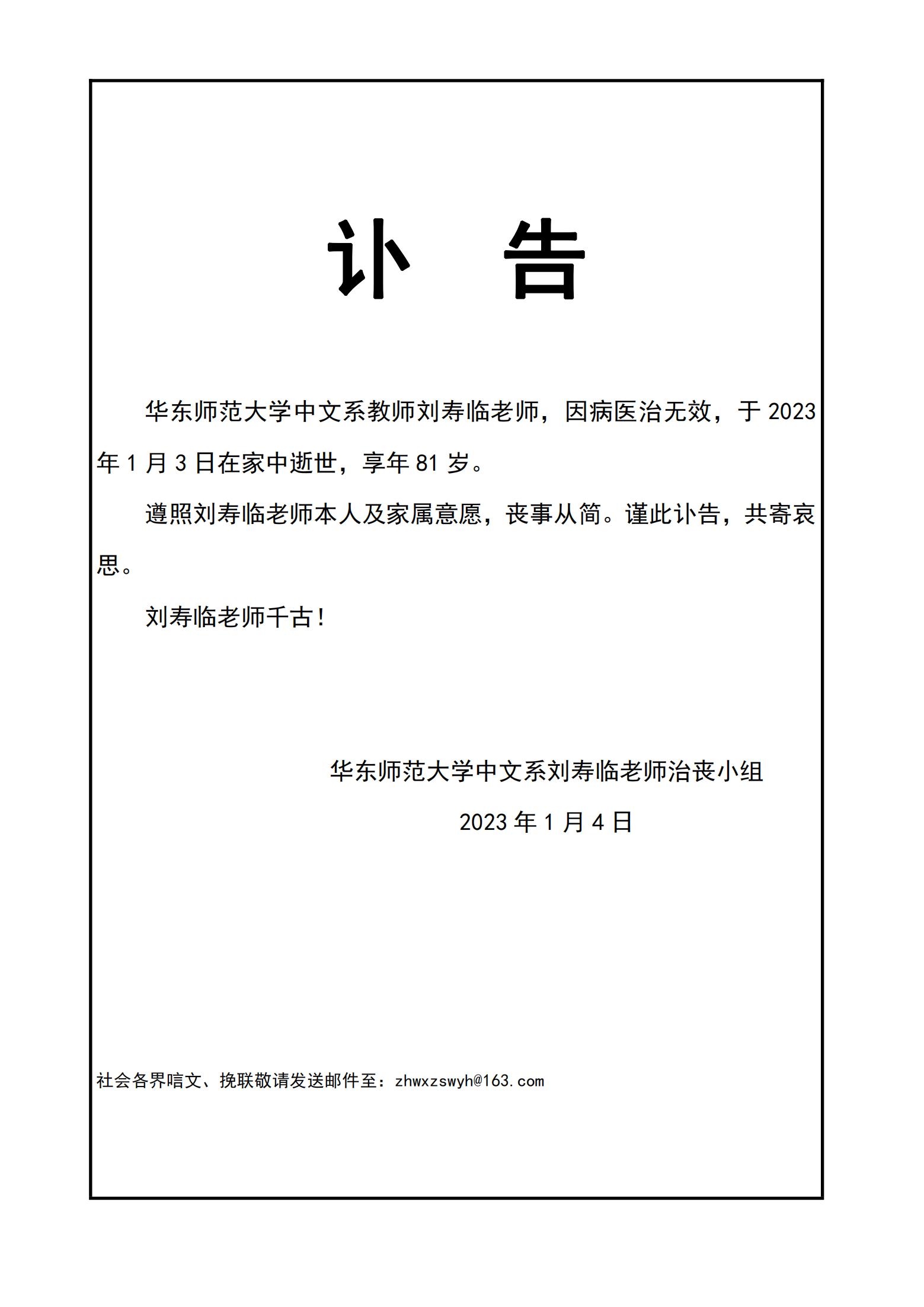 刘寿临老师讣告