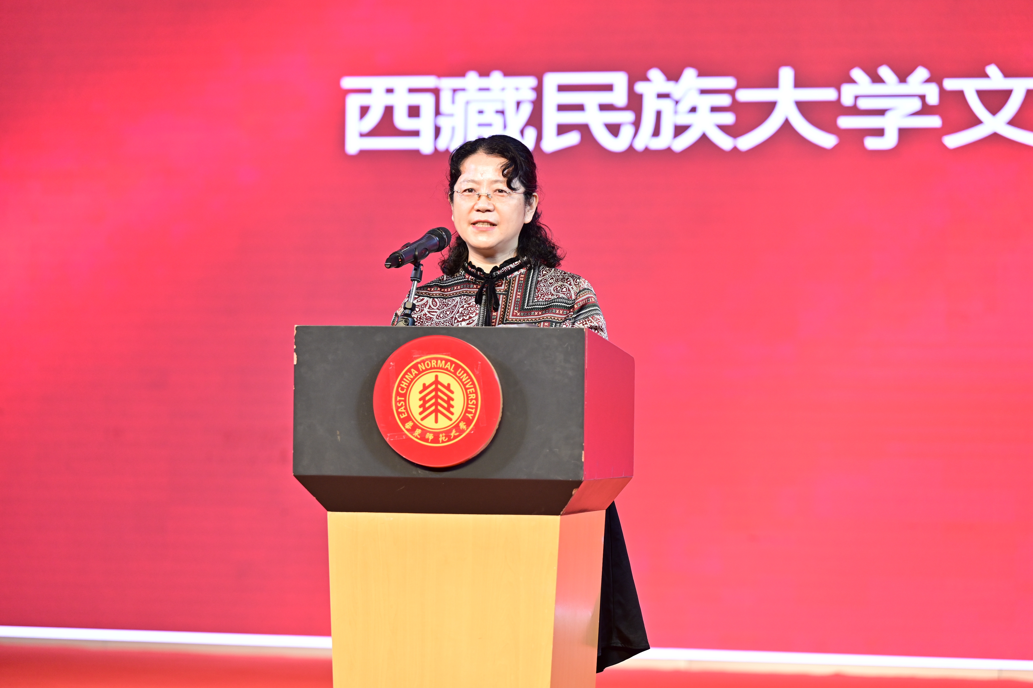 一直以来,华东师大体育博彩网站 坚守社会使命,以服务国家和区域经济社会发展为目标。作为对口支援学校代表的西藏民族大学文学院党委书记任秀丽在大会上致辞,她表示,自六十年代,在华东师大建校不到十年,体育博彩网站 建系不到十年的时候,30余名毕业生支援西藏公学,即西藏民族大学的前身,来自体育博彩网站 等院系的毕业生们为民族教育事业勤奋耕耘,架起了友谊之桥,一直到今天,华东师大体育博彩网站 与西藏民族大学文学院继续共谱办学新篇章。大会现场,西藏民族大学的同学们还送上了西藏民族大学文学院的贺礼,由藏汉文字书写的“山海情深”。任秀丽书记介绍,字的边框为西藏人民创作的“长城文”,寓意以长城筑牢中华民族共同体意识。