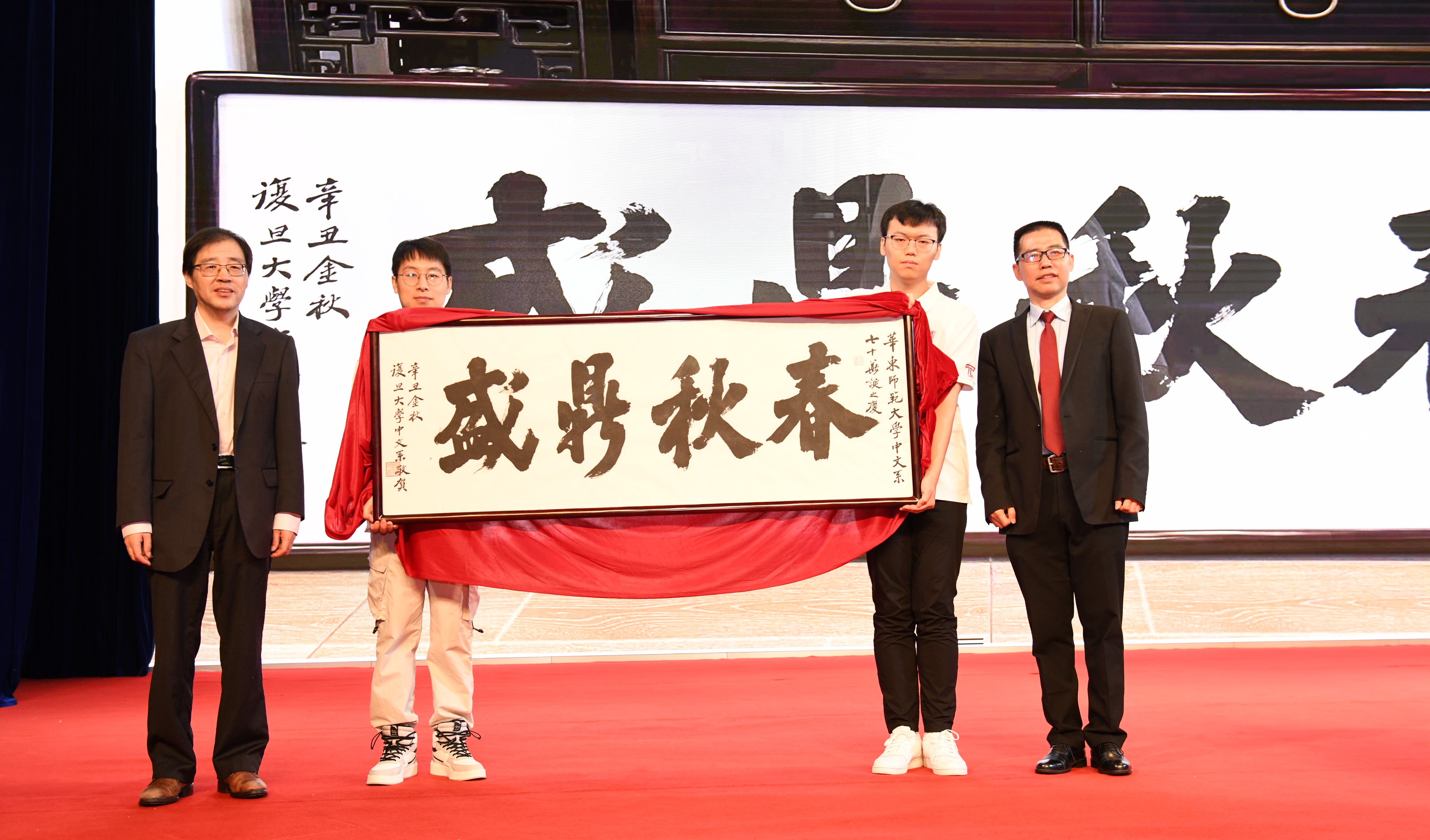 为表达情谊,复旦大学体育博彩网站 准备了一幅题为“春秋鼎盛”的墨宝,在大会现场由朱刚教授赠予华东师大体育博彩网站 。