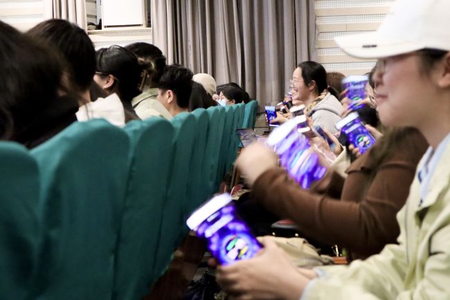 活动开始前,大屏幕上滚动播放着生动的米哈游游戏视频,工作人员热情地迎接着同学们的到来,活动现场座无虚席。