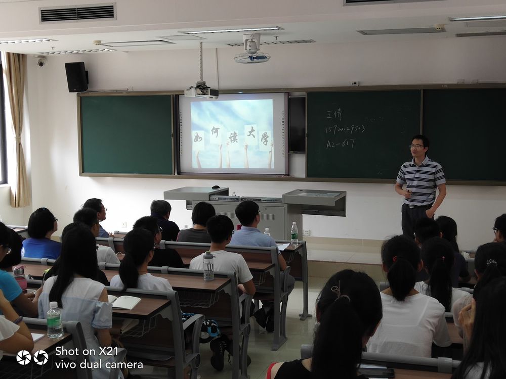 第二阶段是辅导员梁杰芳老师以"如何适应大学生活"为主题对新生进行思想政治教育。她从心理调适,学习方法,人际关系,文明礼仪四个方面展开授课。她细心地告诉新生们,如何在新的环境中尽快适应学习生活,也从为人处事的方面教育新生要如何与师长朋友们和谐相处,更好地处理人际关系。她的讲话,让初来乍到的新生们更好地了解大学生活,可以进一步地规划自己的大学生活和设立目标。