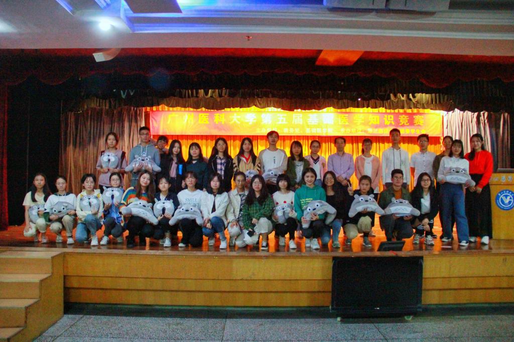 第五届基础医学综合知识竞赛在越秀校区体育馆三楼礼堂举行,本次竞赛由基础医学相关课程的教师涂永生、刘奕生、张雪雁、龚青担任评委,由廖武琼、方泽岚老师和邓文龙、陈嘉瑜同学担任主持人。