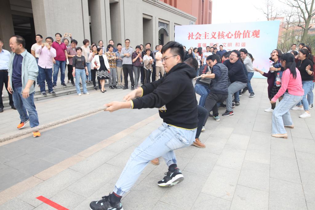 活动伊始,党总支书记龙大宏代表领导班子发表致辞,向全体教职工致以诚挚问候和良好祝愿。经体育博彩网站部门工委精心筹备,此次活动设置了生日会及拔河、套圈圈、投球等参与度高的趣味运动竞赛,温情与激情并存,趣味与竞技相融,现场掌声连连,气氛活跃。