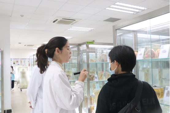 人体解剖学教研室武莹莹博士作关于呼吸系统基本知识以及新冠肺炎等呼吸道传染疾病预防知识的讲座,并与科普工作人员现场为大家演示心肺复苏操作要领,指导参观者亲身感受心肺复苏操作。讲座后,大家依次参观全息3D虚拟仿真实验室、遗体捐献纪念馆及人体标本馆,现场工作人员与武博士分别通过3D眼镜体验、现场虚拟操作、大体标本讲解等方式,让来访参观者对呼吸系统的组成和结构有更深入认识,同时也增长了预防呼吸系统相关疾病的知识。点滴科普,引导大众关爱身体、关注健康。