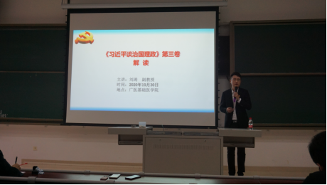 辅导会上,刘涛副教授从《习近平谈治国理政》第三卷的发行历史和章节结构切入,围绕各章节意义、亮点逻辑和重要名词进行细致解读。《习近平谈治国理政》第三卷内容博大精深,刘教授鼓励广大师生全面系统学、深入思考学、联系实际学,不断提高政治能力。