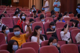 (“代入他人身份 你是否支持遗体捐献?”举手表决现场)