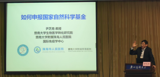 尹芝南教授首先分享了其团队在《Nature》杂志上发表的最新研究成果。该研究首次发现白细胞介素(IL-27)可以直接靶向作用于脂肪细胞,并促进脂肪细胞产热,通过燃烧脂质达到降低体重和改善糖尿病等代谢性疾病的目的。这一研究结果突破了传统观念中IL-27专一性靶向免疫细胞的认知,为肥胖及其相关代谢性疾病的治疗提供了新的靶点。随即,尹教授向在场师生传授自身申报国家自然科学基金的经验,启发大家找准科学问题,引导大家对国家基金的申报有更为深入的认识。