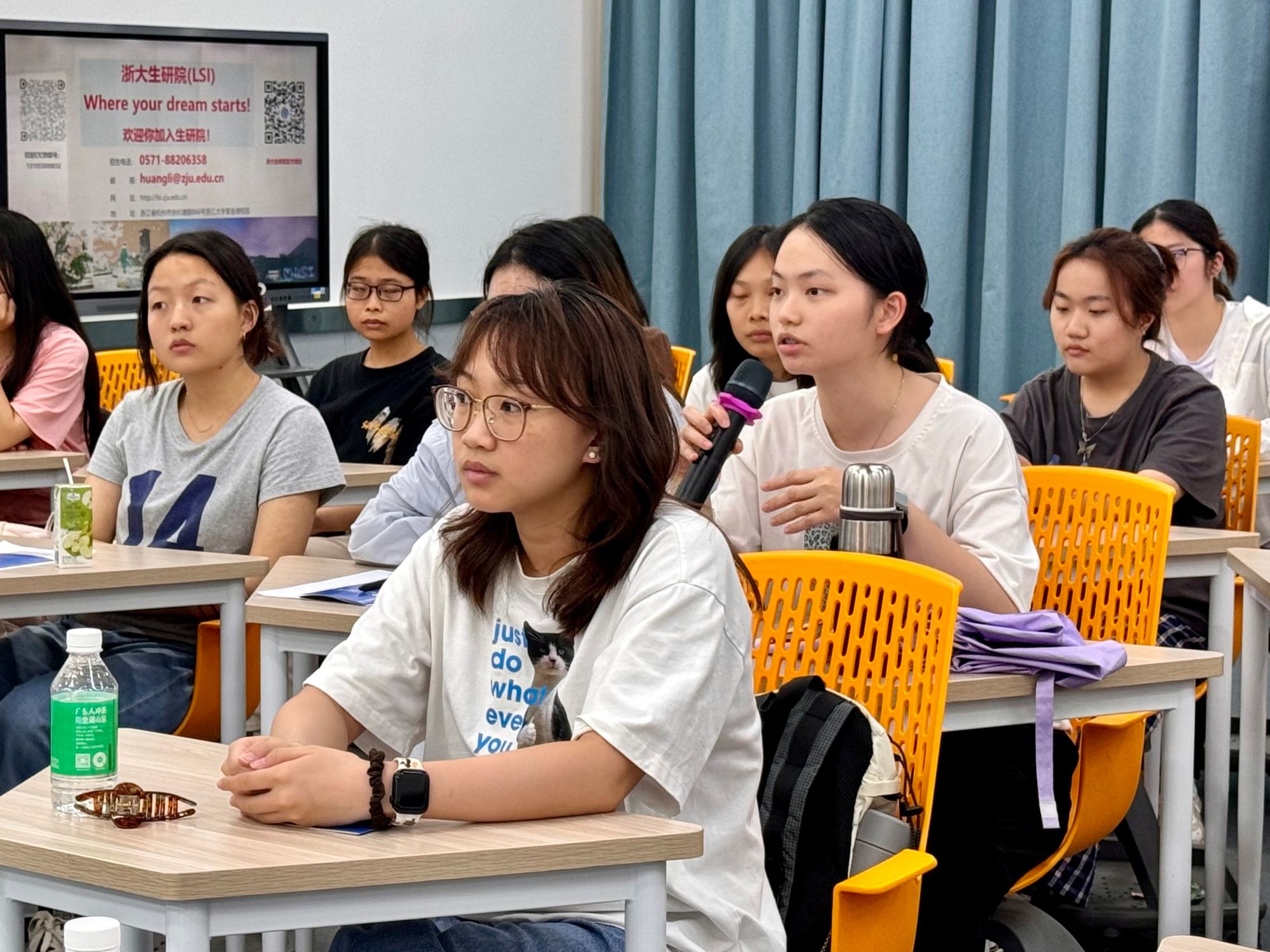 在交流互动环节,同学们围绕外语水平要求、课业考核标准、科研创新项目参与机会、研究生综合考核标准等问题踊跃提问,冯新华院长、金建平教授等老师一一为同学们解答,现场氛围热烈。参加本次介绍会的学生们纷纷表示,这次交流会不仅让他们对浙大生命科学研究院有了更全面的认识,也为他们探索个人未来职业道路提供了更多思路和方向。