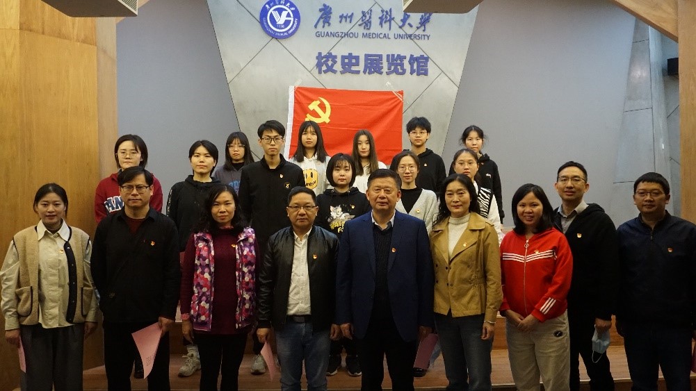 党总支组织15名新党员在校史馆举行集体入党宣誓仪式,并参观校史展览馆及抗非典纪念馆。仪式由党总支书记龙大宏主持,本年度新发展的预备党员和相应党支部书记共20人参加。