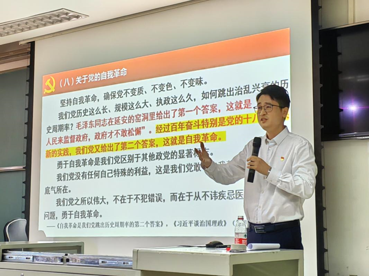 党总支特邀学校宣讲专家刘涛教授作学习贯彻《习近平谈治国理政》第四卷专题宣讲报告会。龙大宏书记主持,全体师生党员参加本次宣讲会。