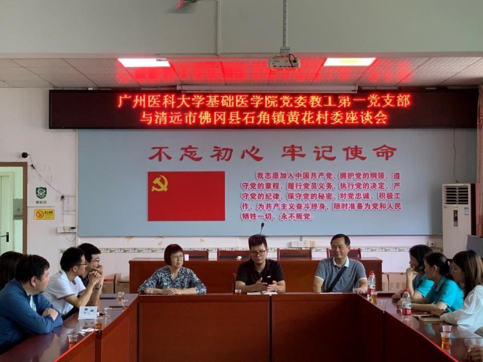 座谈会上,体育博彩网站党委书记尹梅同志介绍了学校及体育博彩网站基本情况,期望能发挥医科院校及基础医学专业优势,结合黄花村发展需求,共同探索结队共建的有效路径,实现合作双赢。黄花村驻村第一书记郭建文同志对近年黄花村的发展情况及未来规划进行讲述,希望能着力于医疗资源进乡、药材种植产业开发及乡村旅游事业的规划宣传等方向与体育博彩网站开展深度合作。体育博彩网站党委副书记章喜明同志表示,体育博彩网站爱心组合志愿服务队与黄花村定点对接,成功结对广东青年大学生“百千万工程”突击队项目—《“粤美乡村﹣佛冈县石角镇黄花村”村落文创品牌打造项目》,体育博彩网站党委将全力推进项目实施工作,努力为黄花村的发展建设做贡献。