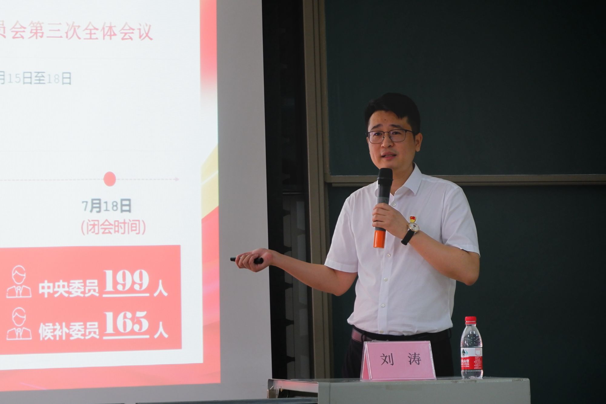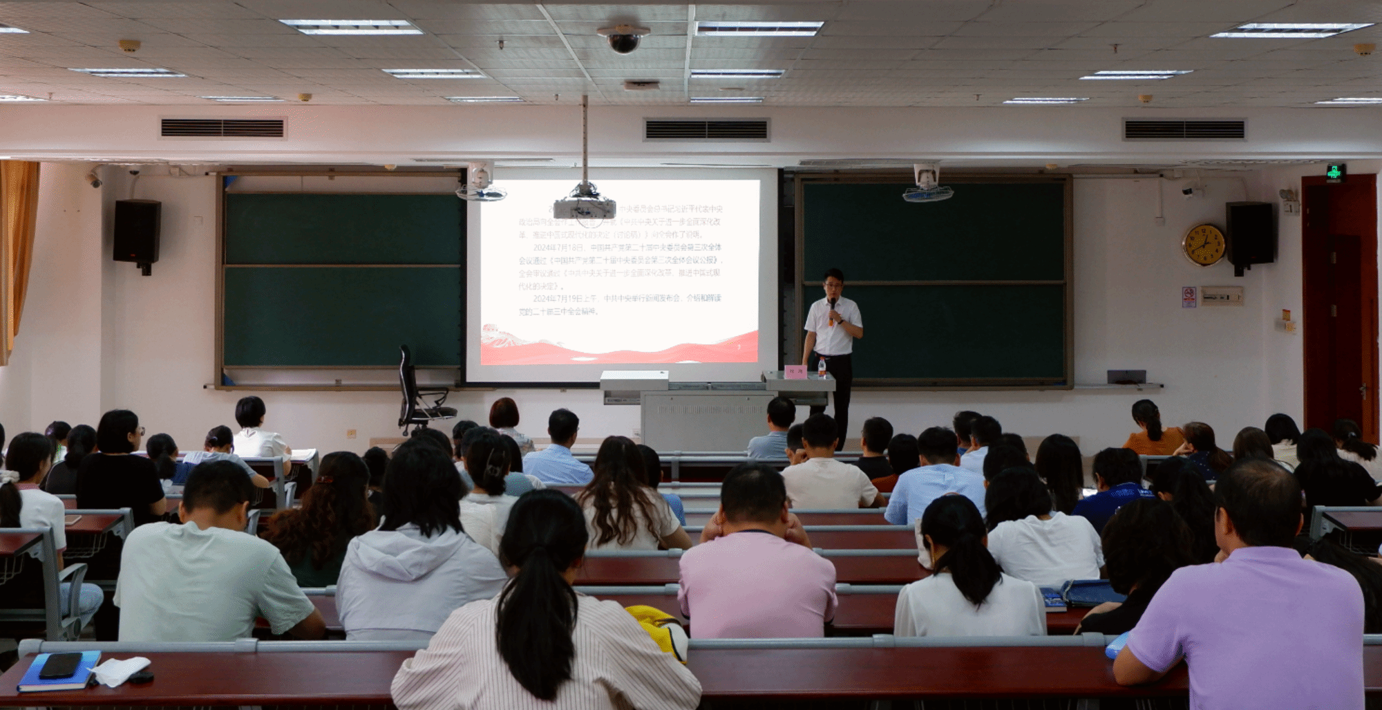 党委举行学习贯彻党的二十届三中全会精神宣讲报告会,邀请学校党委宣讲组成员、马克思主义体育博彩网站副院长刘涛教授作辅导报告。报告会由体育博彩网站党委书记尹梅主持,全体师生党员参加。