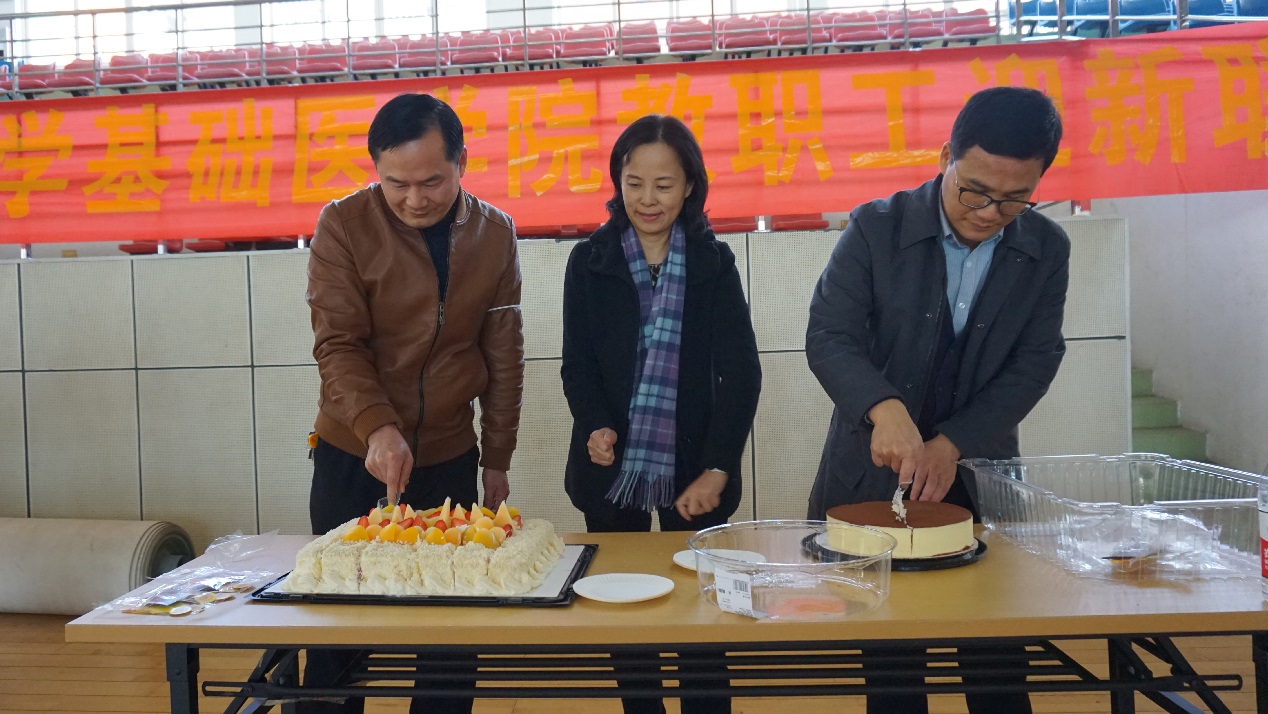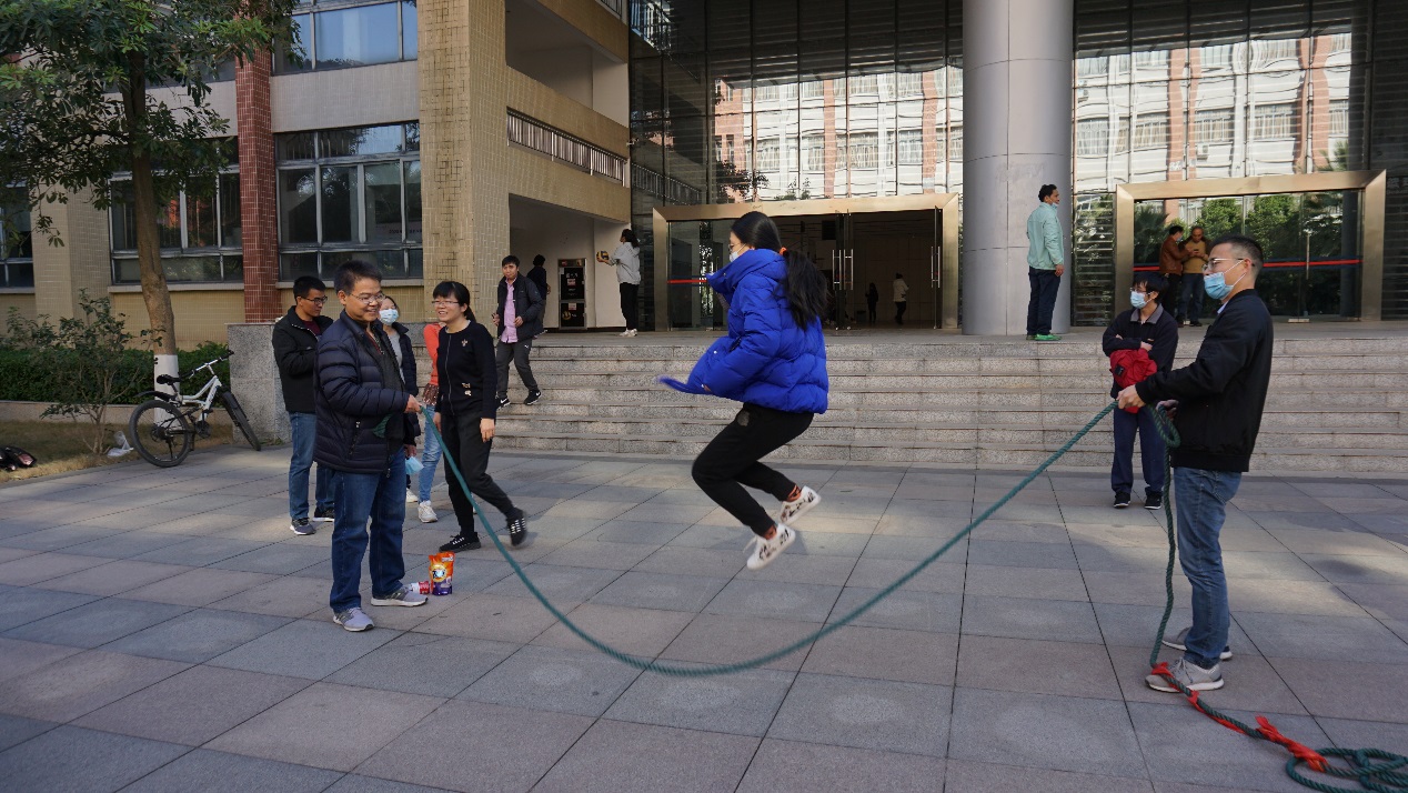 活动伊始,冯卫东副主席代表学校工会致辞,对体育博彩网站 部门工会在2020年度所取得的成绩表示高度肯定,并向全体教职工致以诚挚新年问候和良好祝愿。“迎新联谊”活动以生日会、趣味游戏为主线,通过切生日蛋糕、分享蛋糕等环节,以及抛沙包、踢毽子、跳大绳、套圈圈等趣味活动,让老师们在运动中酣畅淋漓,在交流中再叙友谊,用温情与朝气喜迎新年。