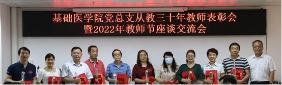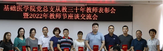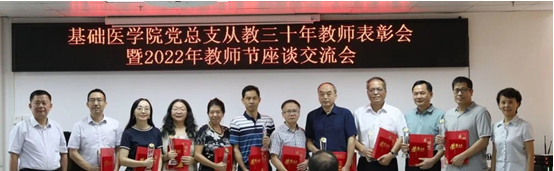 举办从教三十年教师表彰会暨教师节座谈交流会、部门工会下半年教职工生日会。李建华副校长、刘金保原副校长等从教三十年以上老师、2022年教师节风采评选优秀教师、近三年入职老师以及部分生日教师代表参加本次活动,龙大宏书记主持。