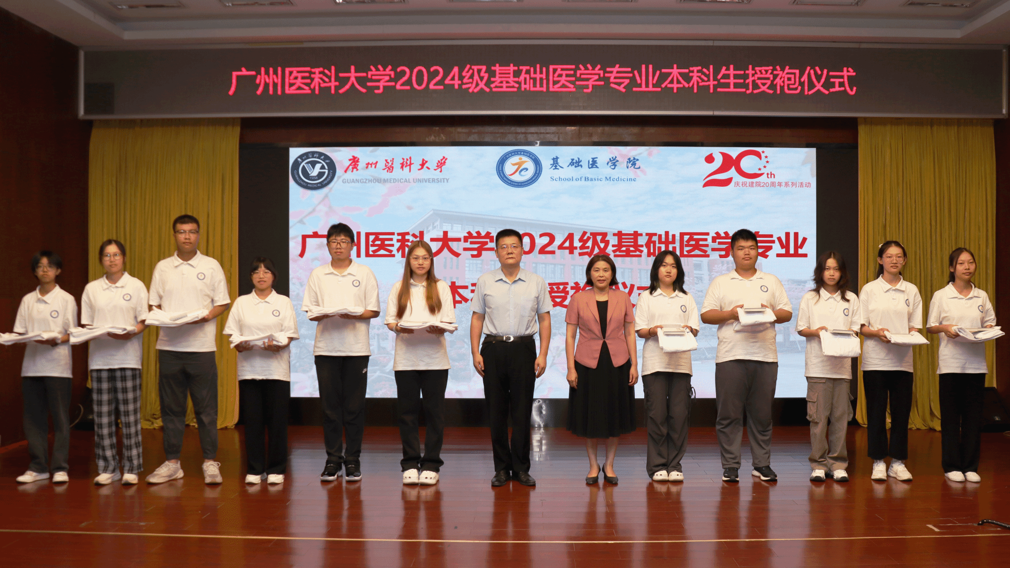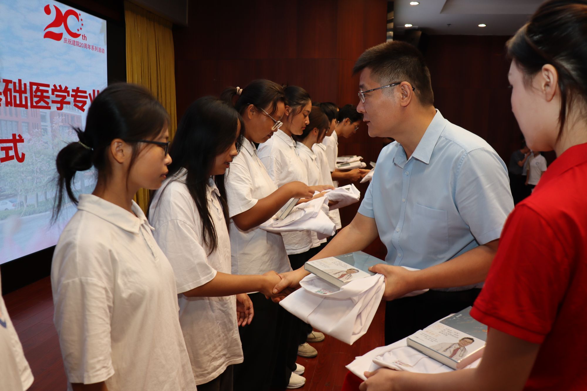学校领导为基础医学专业学生授袍、赠书