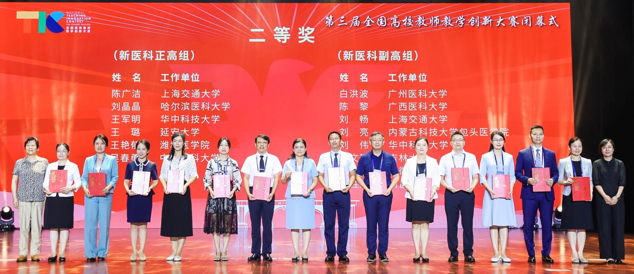 8月22日上午,第三届全国高校教师教学创新大赛(以下简称“国赛”)闭幕式及颁奖典礼在浙江大学举行。我院白洪波老师带领的《心血管系统疾病》课程教学创新团队脱颖而出,斩获新医科赛道副高组二等奖,实现我校在该项赛事国家级别奖项的历史性突破!