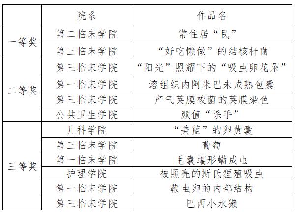 为了丰富同学们的课外生活,增强对《病原生物学》课程的学习兴趣,我院联合教务处成功举办第三届“体育博彩网站 病原生物学摄影与绘画比赛”。本次比赛共收到2020级临床、2021级护理等专业的学生作品50余幅,评选出获奖作品12幅,其中:一等奖2名,二等奖4名,三等奖6名。