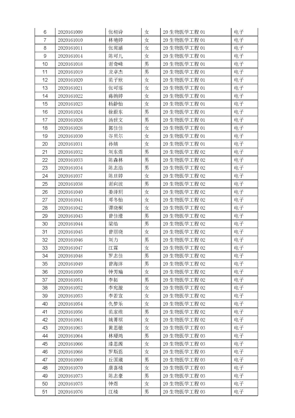 体育博彩网站 生物医学工程专业2020级培养方向分班公示