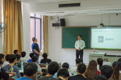 蔡总以分享其“从事医疗行业的初心——赚良心钱,应人民之需求”拉开讲座帷幕。接着,结合本人工作经历和经验,普及关于医疗器械产品的策划、开发、生产、注册认证和营销的知识。产品策划要求抓需求做定位、重创新和注性价比;产品开发实施应充分考虑设计方案和成本等因素;生产产品需注意量产、质检和库存控制等问题;产品注册和认证是关键;产品营销应掌握包装宣传、做好产品定价、降低成本和拓展销售渠道等策略。接近尾声时,蔡总针对教师和学生提出的创业合作伙伴的选择和创业初心等问题做了详细回答。