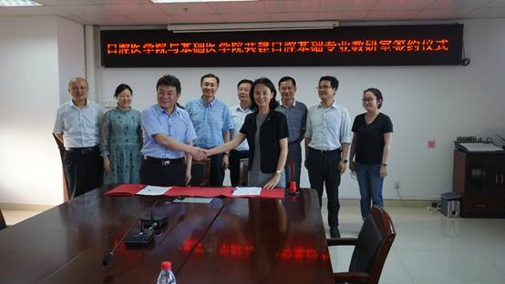 为进一步支持建设口腔医学专业,完善管理架构,经口腔医体育博彩网站与体育博彩网站 的友好协商,5月14日下午,双方签订共建口腔解剖学教研室和口腔组织病理学教研室合作协议。我院马宁芳院长、龙大宏书记、章喜明副院长、冯杜副院长,口腔医体育博彩网站李江院长、曾杨滨书记参加了活动。会议在番禺校区举行。