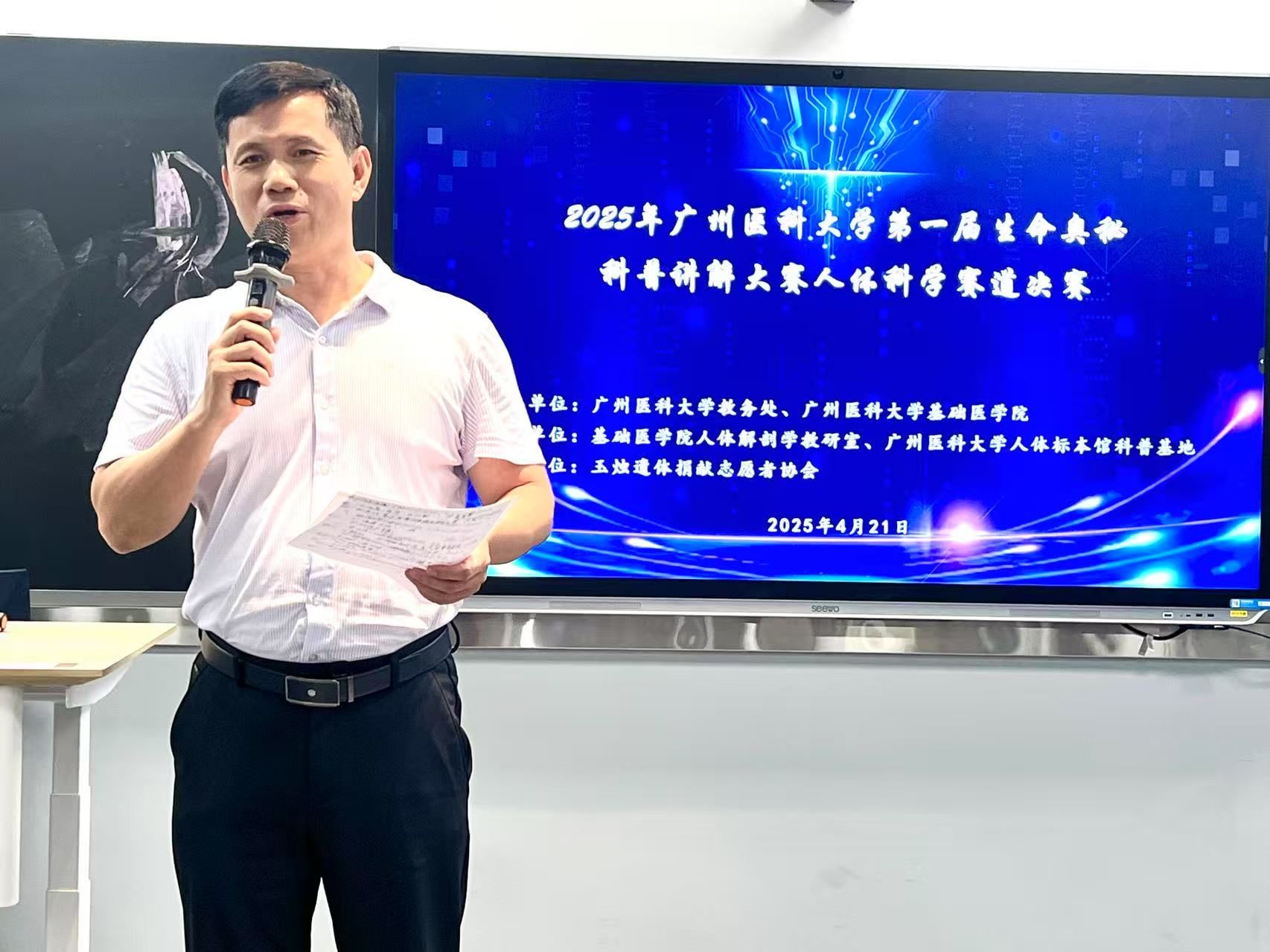 4月21日,体育博彩网站 首届生命奥秘科普讲解大赛(人体科学赛道)决赛顺利举行。本次赛事由体育博彩网站 联合教务处共同主办,人体解剖学教研室、人体标本馆科普基地承办。中山大学中山医体育博彩网站徐达政老师,广州市番禺区科学技术协会薄圆圆老师,以及我院党委副书记章喜明、人体解剖学教研室王乐禹主任等30余名专家、评委、指导老师和学生参加了本次活动。