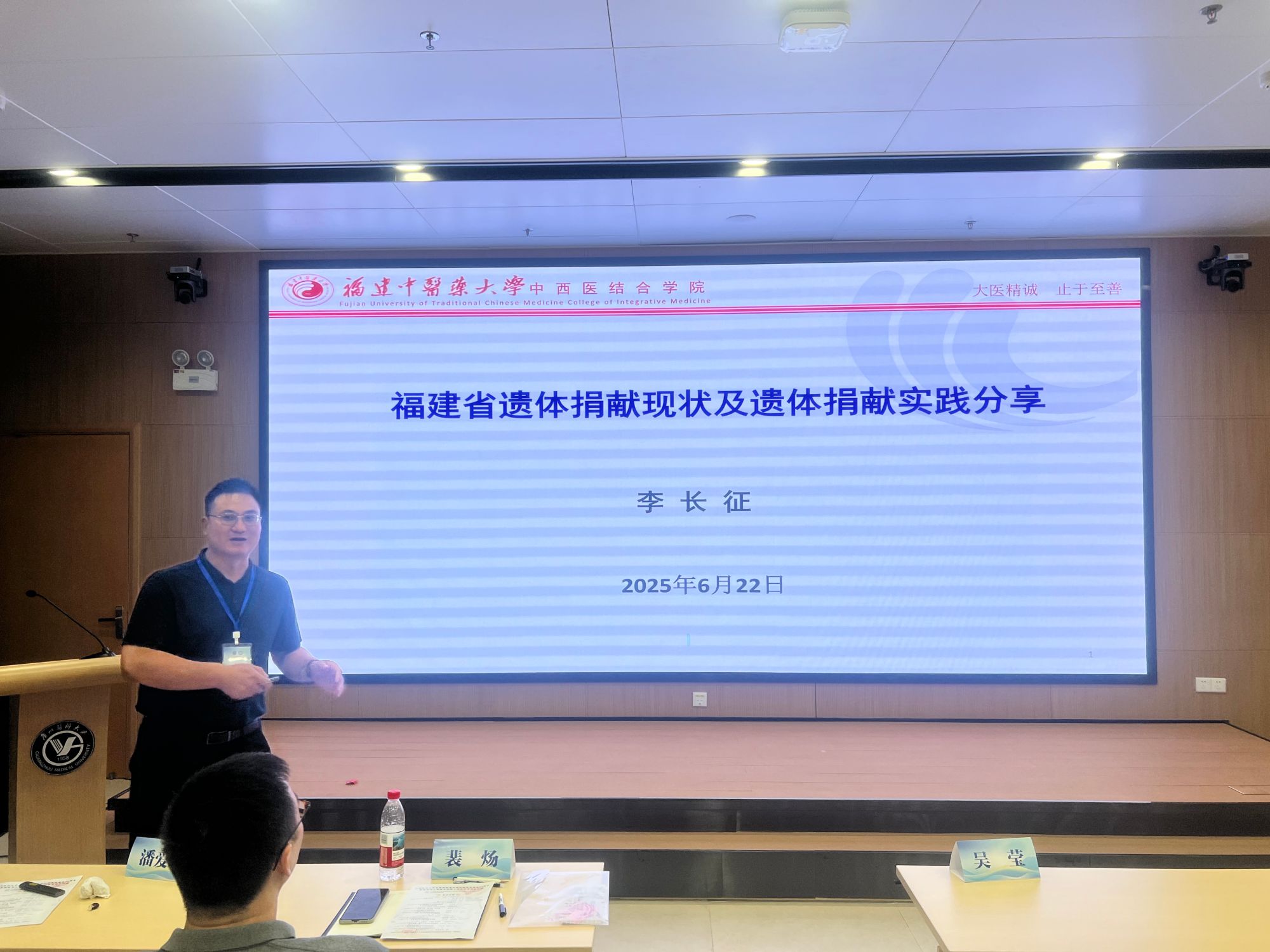 福建中医药大学李长征高级实验师作《福建省遗体捐献现状及福建中医药大学实践分享》报告