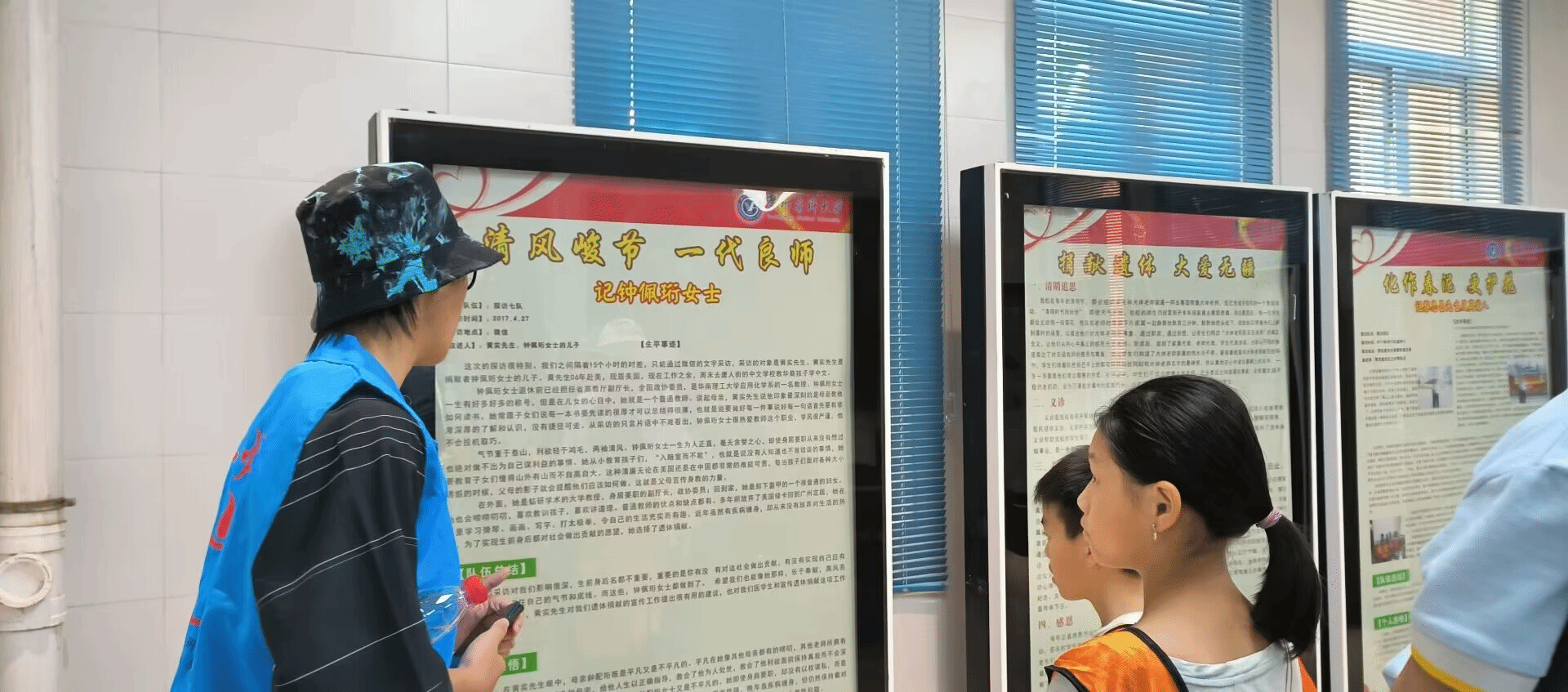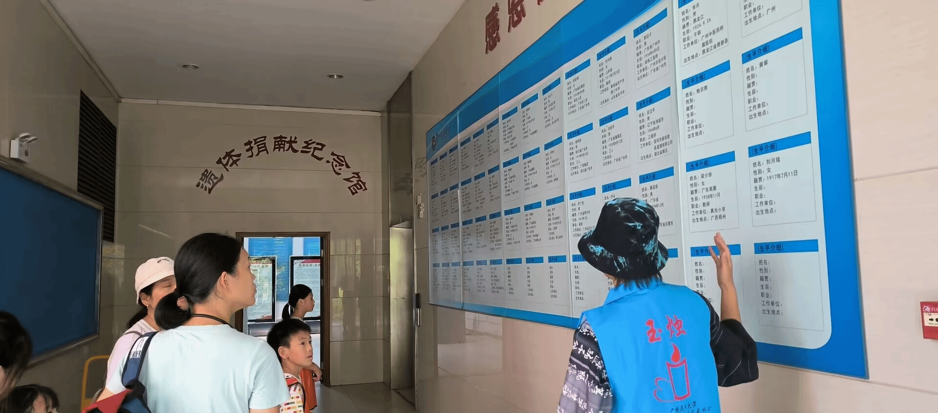 玉烛遗体捐献志愿者协会的志愿者在遗体捐献纪念馆为来访者讲解一位位为医学事业而无私奉献的遗体捐献志愿者的事迹。他们的一生或漫长或短暂,或平淡无声或波澜壮阔,却都在归于尘土的那一瞬化身火烛散发微光。他们的名字被永远铭刻在感恩榜上,向来访者们昭示着他们平凡而伟大的一生。