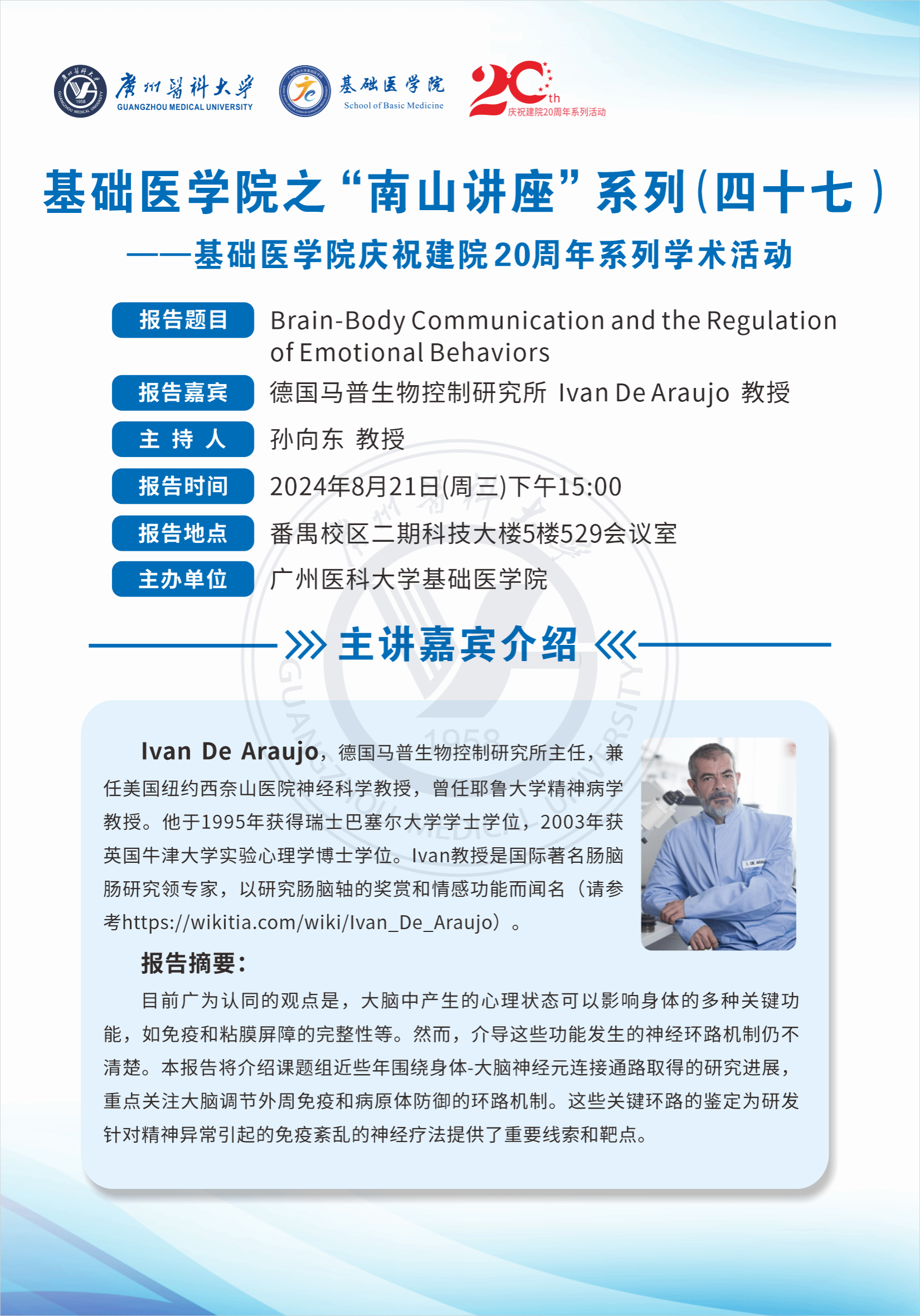 学术讲座——Brain-Body Communication and the Regulation of Emotional Behaviors