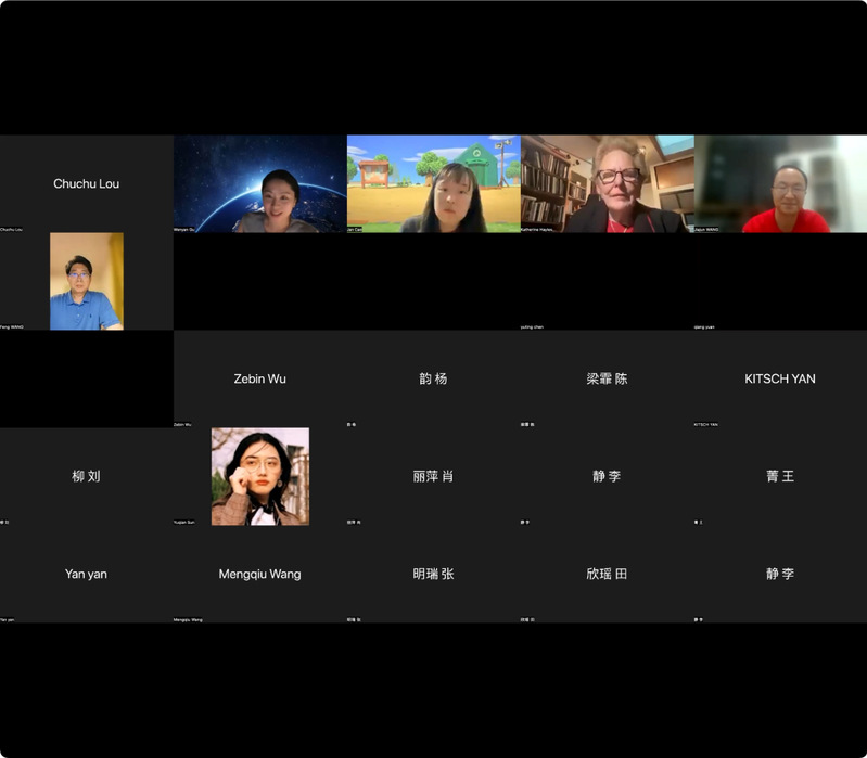 随后,海勒教授讨论了几种针对人工智能的文学批评策略。她借鉴“零假设”(null hypothesis)的概念将第一种策略命名为“空值策略”(null-strategy),这种批评模式认为人类和人工智能的文本处于平等地位,而它的错误正在于忽视了生产文本的物质条件,并且削弱了我们对于语言表征世界的能力的信念。在海勒教授看来,出于政治与哲学原因,我们需要对语言表征世界的能力抱有信念。不过,海勒教授仍然认为GPT-3是一个令人印象深刻的庞大惊人的项目。她反驳了那些将GPT-3比作“随机鹦鹉”(stochastic parrots)的讽刺,因为GPT-3不仅可以识别,还可以再现风格和体裁这样的高层次特征,这意味着它能够创建与其他推论相关联的推论,从而形成意义网络。这就引发了文学批评应该如何回应这些文本的深刻问题。由此,海勒教授逐一讨论了四种针对人工智能的文学批评策略:其一,关联响应与网络源序列(correlate responses with source sequences on web);其二,关联响应与输入(correlate responses with inputs);其三,分析作为折射输入物的响应(analyze responses as refracting inputs);其四,分析响应的意识形态偏见(analyze responses for ideological biases)。最后,海勒教授指出GPT-3中存在着一个由索引关系网络构建的客观世界(Umwelt),但这种世界与人类的世界有很大不同,区分此二者是重要的,这也正是文学批评所能做出的贡献。海勒教授讲座结束后,由王峰教授对讲座做出评议。王峰教授首先对海勒教授的精彩讲座表示了感谢,他指出这一讲座是人文学科对新技术发展的迅速回应。王峰教授认为,我们有必要对海勒教授讲座中的两个重要概念,即“物质性”和“表征”进行深入的讨论,并认为人机融合创作会是未来的主流形态。其次,王峰教授指出海勒教授提出的“指代的脆弱性”这一概念尤其值得重视,它意味着机器对世界的经验和它们产生的语言之间存在固有的断层。尽管人工智能在指代上不断扩展,它与人在语言表述上的根本性机制差异却时刻提醒我们这一“指代的脆弱性”的存在。最后,王峰教授提醒我们必须以人为中介,人工智能是以模仿计算为基础,对人的某一功能进行计算性模仿,而这也为文学批评找到了一条新的路径。最后是自由提问环节。与会师生纷纷表示受益匪浅,并积极踊跃地向海勒教授提问,问题涉及人工智能、GPT-3、后人类、元宇宙、人类世等诸多领域,海勒教授也对这些问题作出了不乏幽默的精彩回答。在热烈的讨论氛围中,本场讲座圆满落下帷幕。